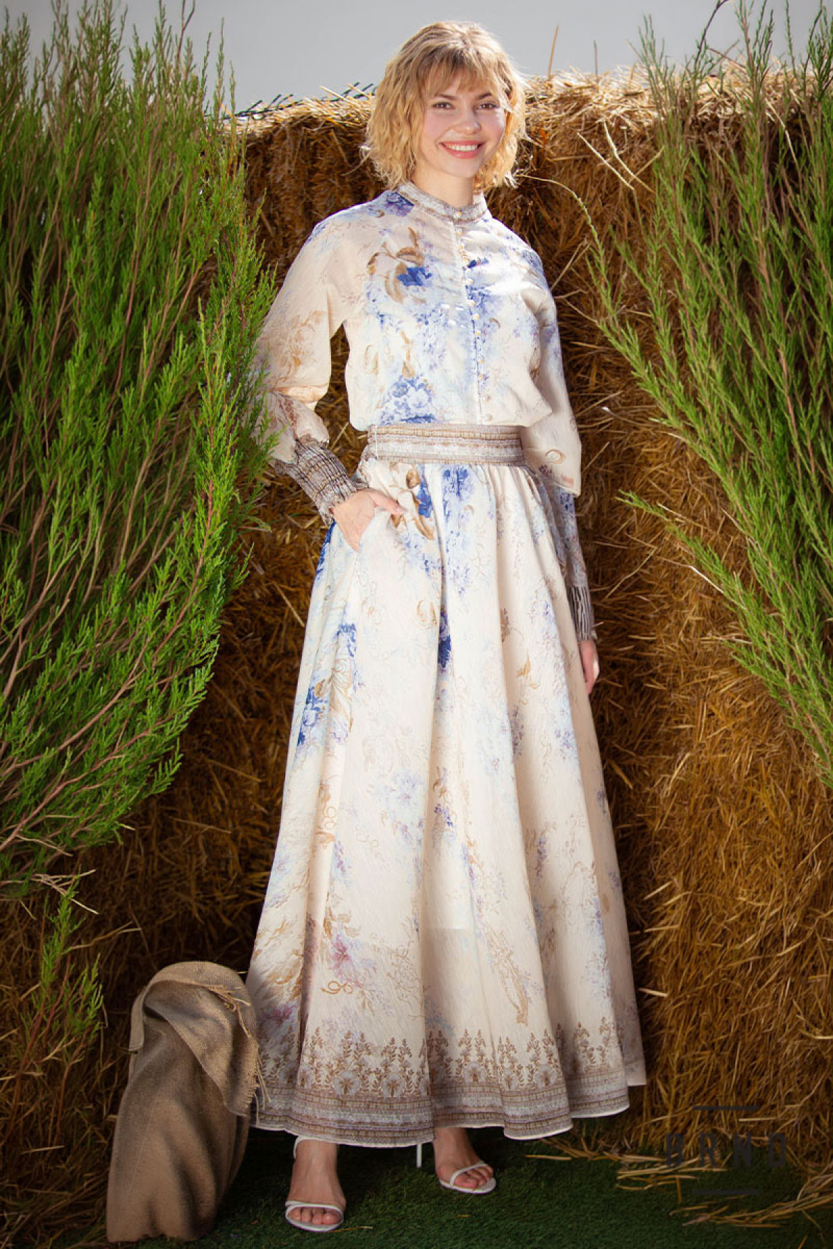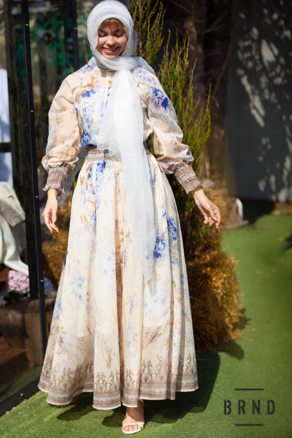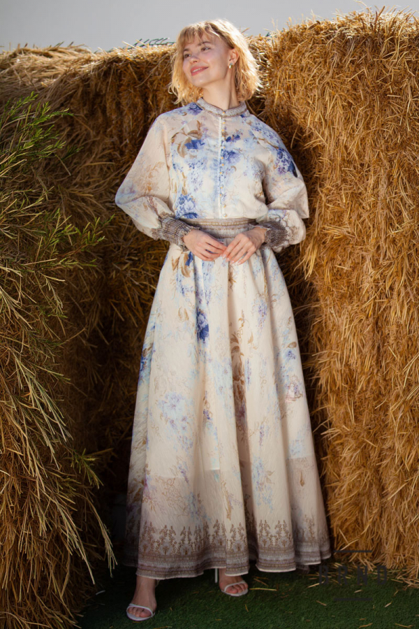 Костюм-трійка: блуза прямого крою, рукав-буф, комір-стійка; майка укорочена,прямого крою; спідниця А-подібного крою, з кишенями, пасок комбінований з гумовою стрічкою (Zimmermann)